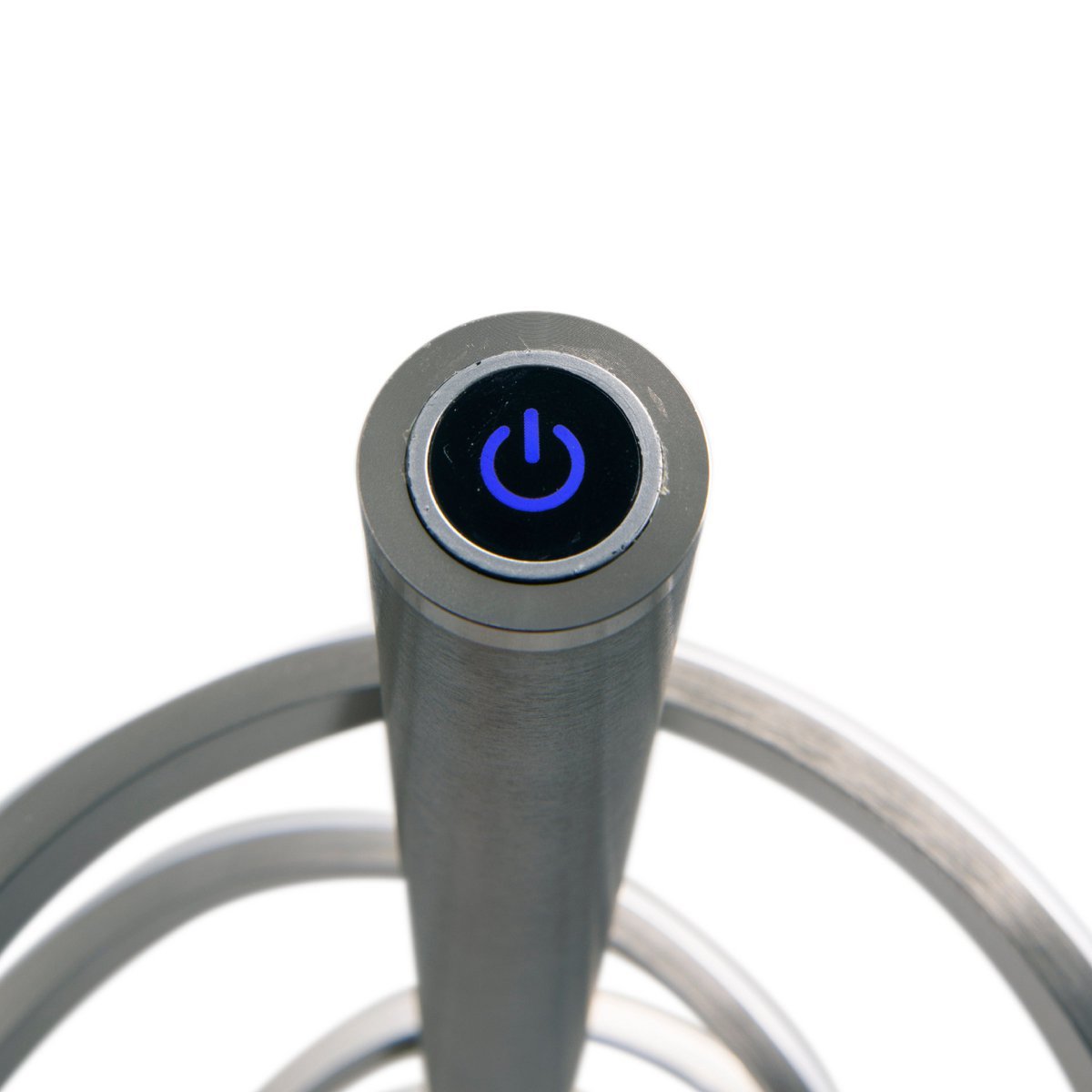 Encased in a matte nickel finish, complemented by pristine white accents, the "Belleza" features a striking luminous strip intricately wrapped around a sturdy metal rod. This artisan-crafted masterpiece not only provides bright illumination but elevates your decor, making it an exquisite addition to your living room, dining room, bedroom, or office.
