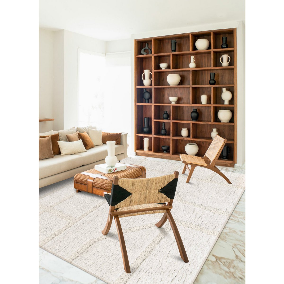 Each carpet boasts a captivating relief texture that interacts with light, casting enchanting shadows that breathe life into your living environment. Handmade by skilled artisans, its design highlights refined simplicity while being a testament to authentic craftsmanship. Imagine sinking your feet into its plush 40 mm thickness, bringing a cozy embrace to your living room or bedroom.