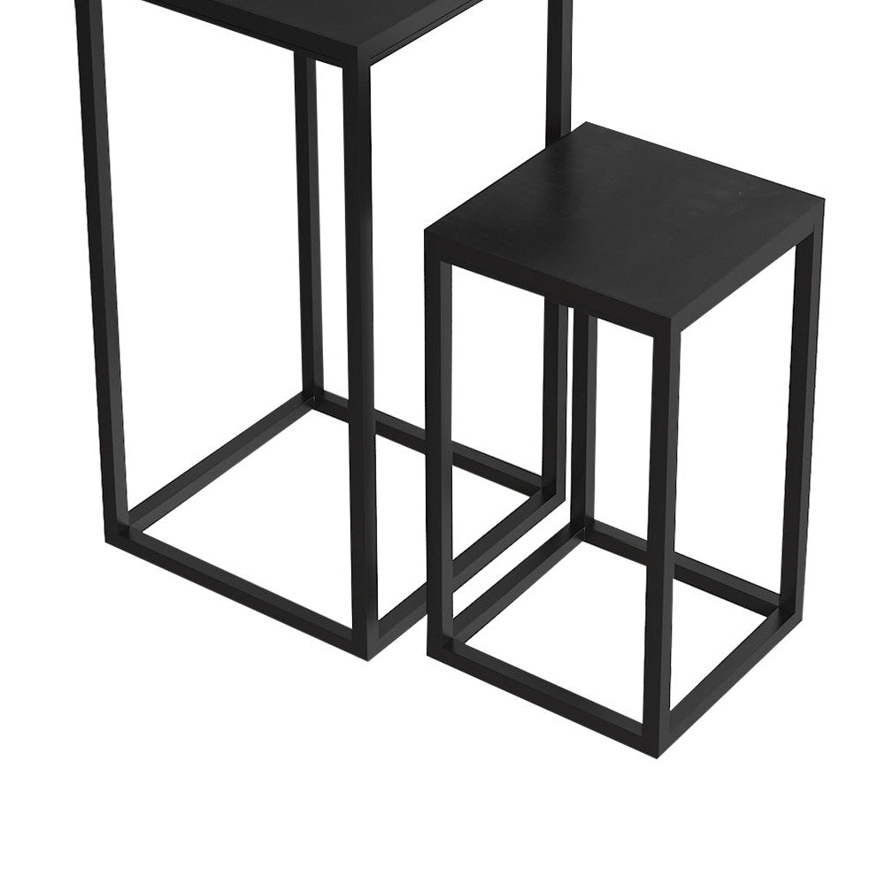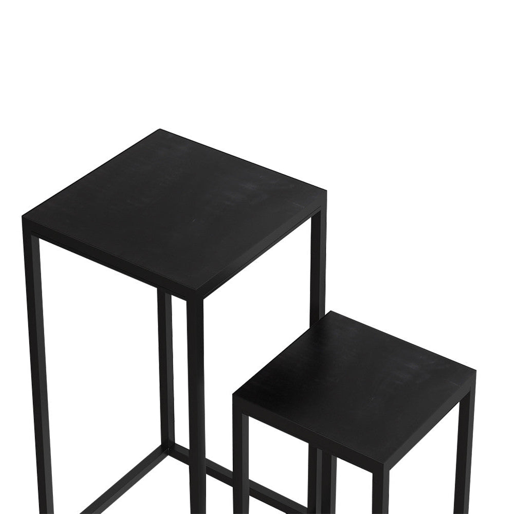 Maelis est un ensemble raffiné de deux tables gigognes d'appoint conçues pour un style flexible. Le caractère chaleureux du bois de manguier est fini en noir profond, créant un look épuré et moderne avec une subtile variation naturelle. Le cadre métallique élancé maintient l'ensemble léger et structuré, facilitant son placement dans les salons, chambres ou coins lecture.