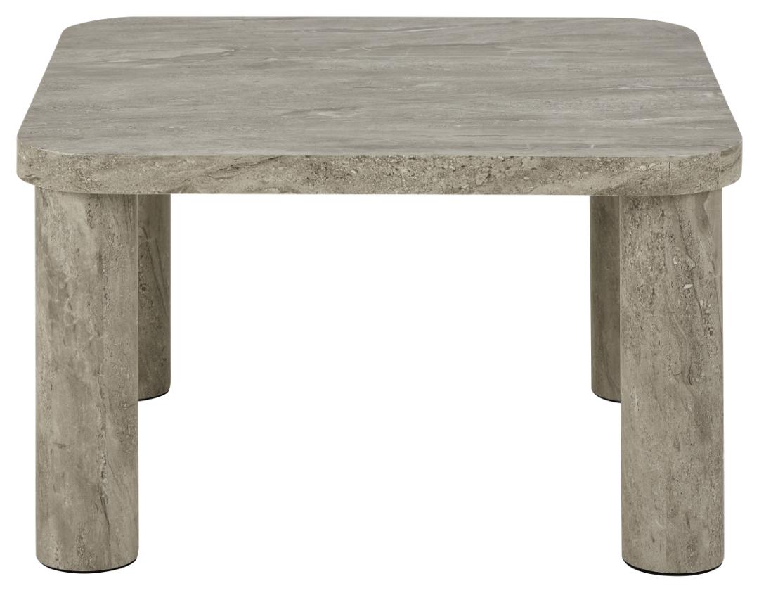 Revêtu d'un élégant aspect marbre gris, cette table basse s'harmonise avec le contexte de son espace, lui conférant un caractère unique. L'association de pieds massifs et robustes avec un plateau carré aux coins arrondis en fait une pièce remarquable. C'est un design flatteur qui complète de nombreux styles de canapés.