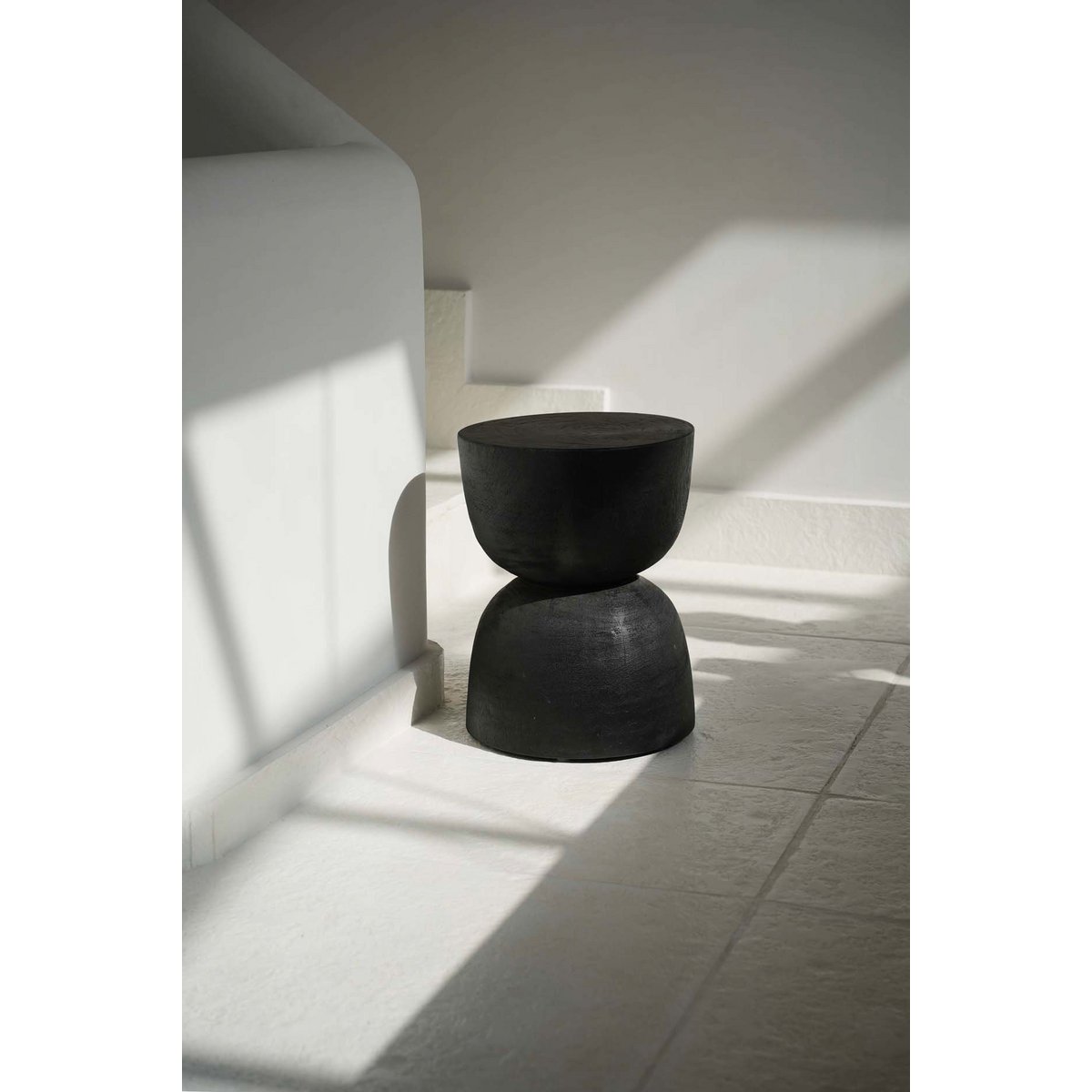 The Montreal stool blends contemporary elegance with the warmth of natural suar wood. Its sleek black finish enhances the grain, making it a striking accent piece. Designed to serve as extra seating, a small table, or simply a decorative pedestal, it adds sophistication to any setting.